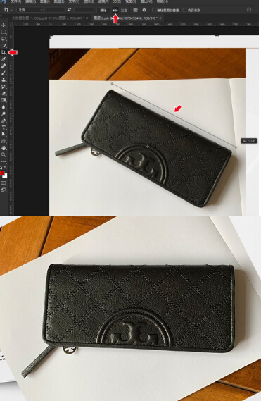 拍好的照片在电脑上打开经常会遇到视觉倾斜,尤其是产品平铺图,抠图前可借助裁剪工具,顶部属性栏选中“拉直”,然后在产品边缘平行拉一条线,按回车键即可校正角度,再抠图的话就不会出现角度问题了。