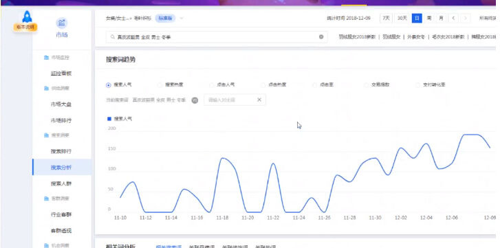 首先只打开搜索人气和在线商品数的数据,用在线商品数除以搜索人气,而且两者之间数据差距不要过大。一般1:10以内我们都可以接受,有些类目竞争太激烈的超出这个范畴我们也只能接受。其次,如果数据优质则再看商城点击占比和转化能力是否优秀。如果在线搜索人气低,在线商品数很少,但是如果搜索人气程上涨趋势,虽然转化率不高,那这样的有可能是我们潜在的神祠。因为获得流量的门槛很低,竞争也很小,这种词可能会成长起来,但也可能随时就死掉了,但是这样的词建议能选就直接选进来,我们不知道它什么时候能爆发,一旦爆发对我们是很大的机会,说不定我们的产品就直接做起来了,就算没有爆发,最了不起我们在优化一下标题就好了,对我们也没有什么损失。