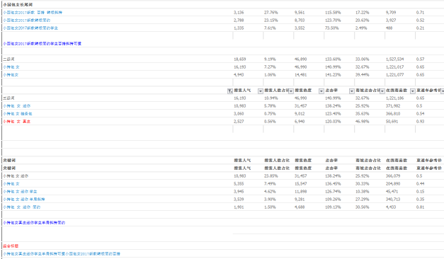我们做标题是为了什么?我们的目的就是为了让他能准确描述我们的产品,能够被更多人搜索到,市场竞争压力能够更小。所以一般在标题组合中,我们主要考虑三个数据,商城点击占比(市场竞争),在线商品数(市场竞争)和搜索人气(市场热度)。首先根据商城点击占比多少来看该词在天猫还是淘宝的受众高,一般像床,电器,这种客单价比较高的产品,客户会很注重质量保障。他就会选择去天猫店铺购买;而其他小客单价产品,如衣服,零食,这类小产品客户就不会很注意是什么类型的店铺。